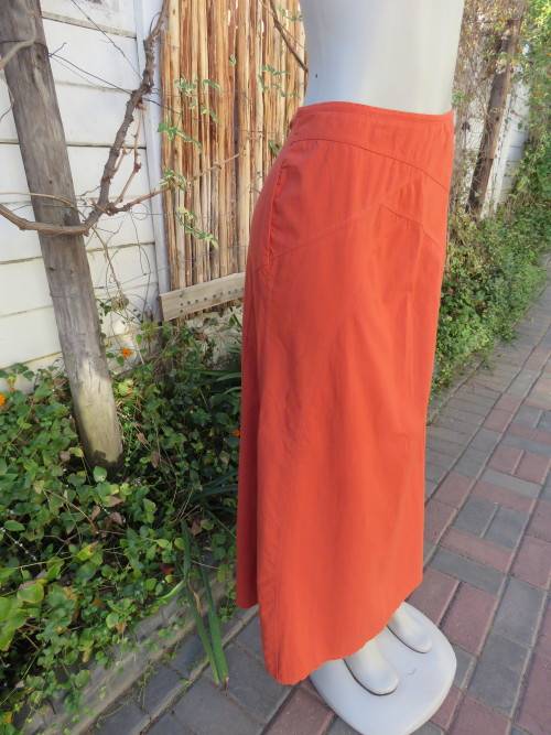 Unique paneled brick colour ankle length skirt in 100% cotton.By 'BAYETTE' in size 40/16.New cond.