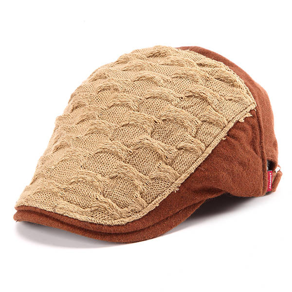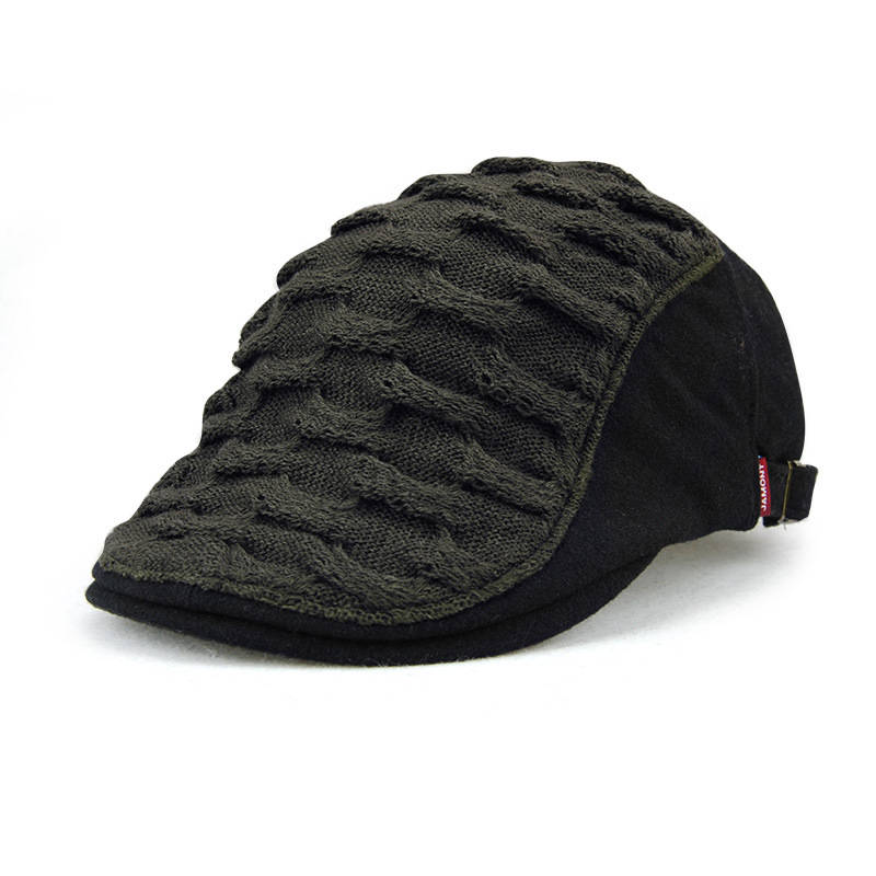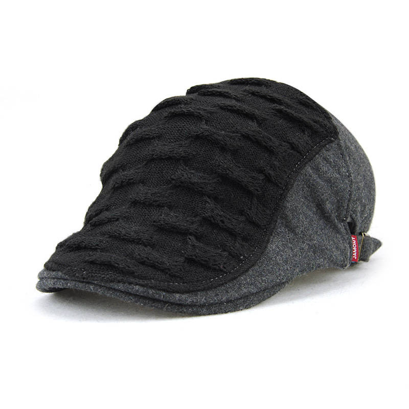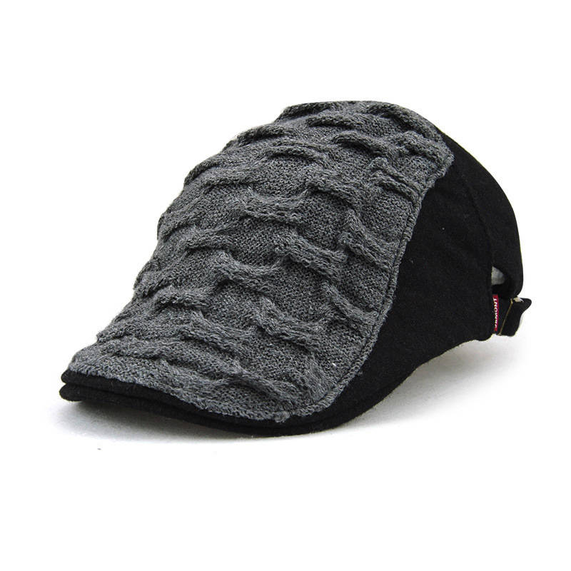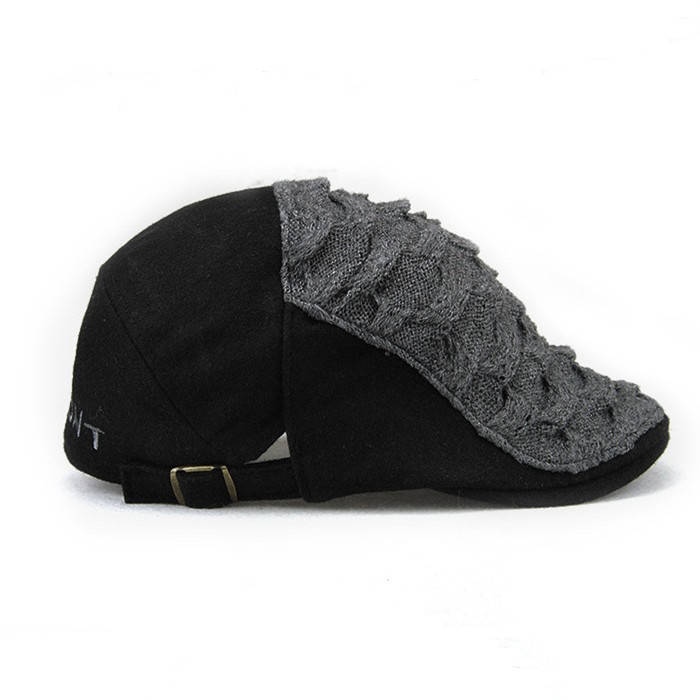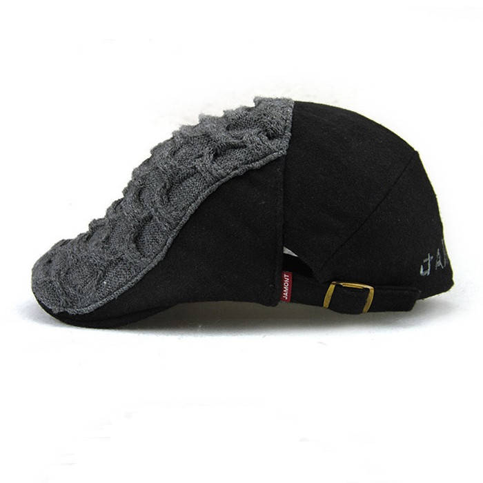 Unisex Acrylic Knitted Beret Hat Buckle Paper Boy Weaving Cabbie Gentleman Visor Cap For Men Women