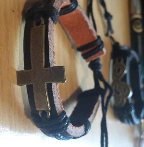 Unisex  BLACK  Brass Cross Leather  Bracelet