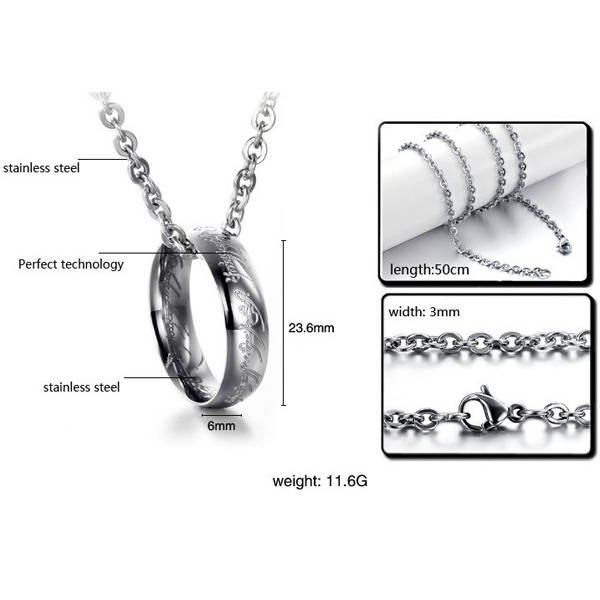 Unisex Lord Of The Ring Pendant Chain Necklace Titanium Steel