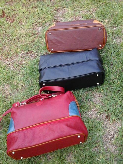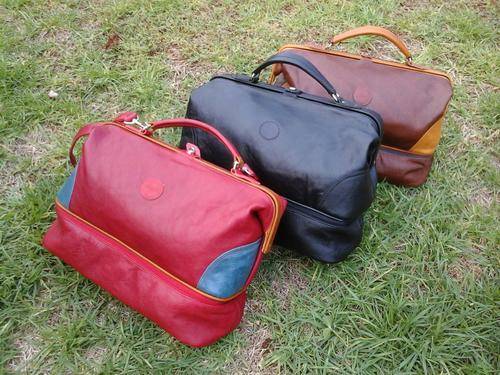 BAGS ARE MADE FROM COWHIDE LEATHER AS SHOWN IN THE PICTURE.