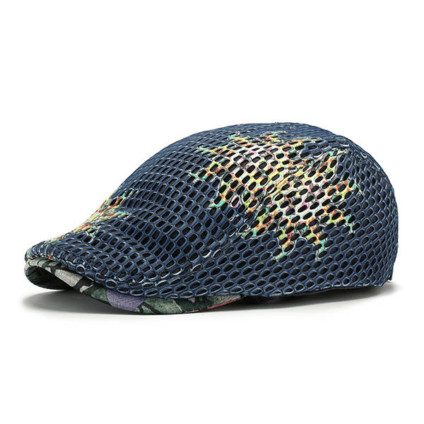 Unisex Women Men Cotton Mesh Hole Flower Printed Newsboy Beret Cap Flat Buckle Cowboy Cabbie Hat