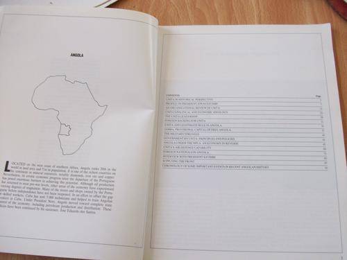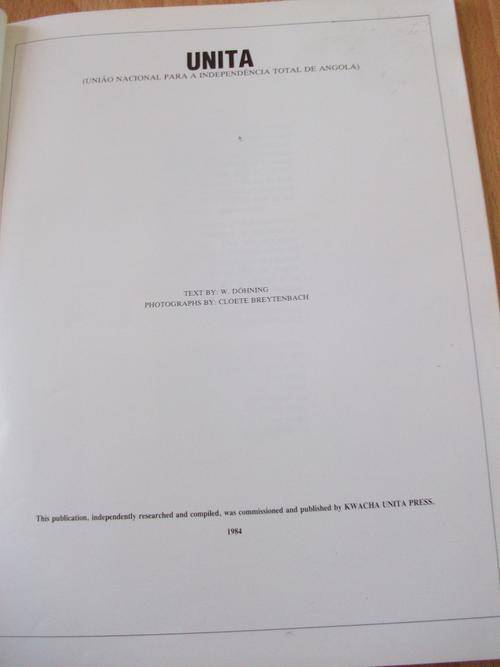 LARGE SOFTCOVER:22X29.5CM:PUBLISHED IN 1984 BY KWACHA UNITA PRESS:93 PAGES WITH MAPS AND NUMEROUS COLOUR PHOTOGRAPHS:THE BOOK IS A DOCUMENTARY OF UNITA(UNIAO NACIONAL PARA A INDEPENDENCIA TOTAL DE ANGOLA) WHICH WAS ESTABLISHED IN THE NINETEEN SIXIES TO FIGHT THE THE PORTUGESE IN ANGOLA AND LATER FOUGHT WITH THE SOUTH AFRICANS AGAINST THE MPLA AND CUBANS.THE LEADER OF UNITA WAS SAVIMBI(SEE SAVIMBI'S ANGOLA) WHO WAS KILLED BY ANGOLAN FORCES IN FEB 2002.IN GOOD CONDITION AND INTERNALLY CLEAN.