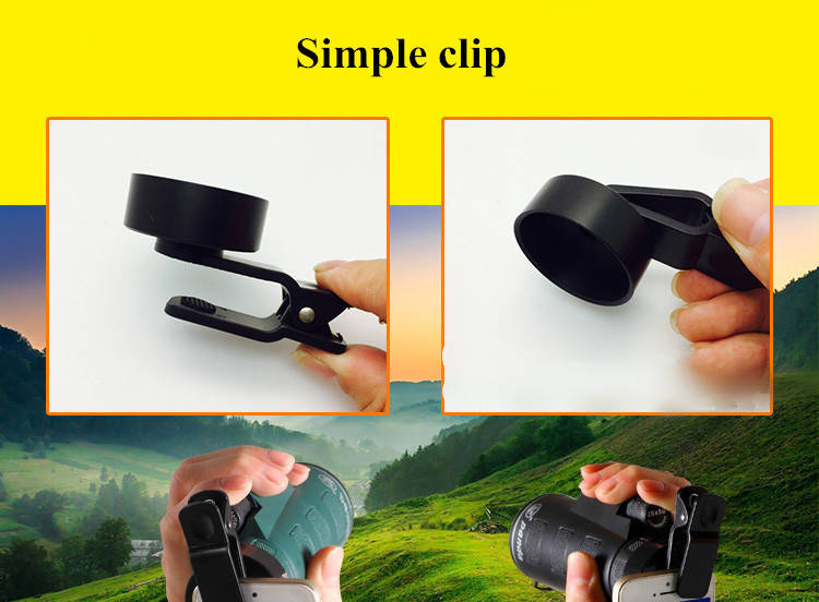 3. Simple clip: it supports to the smartphone camera lens that is far away from phone frame side (about 2cm or more) like Samsung galaxy S6, S7 or other smartphones. It is just as a little gift.
