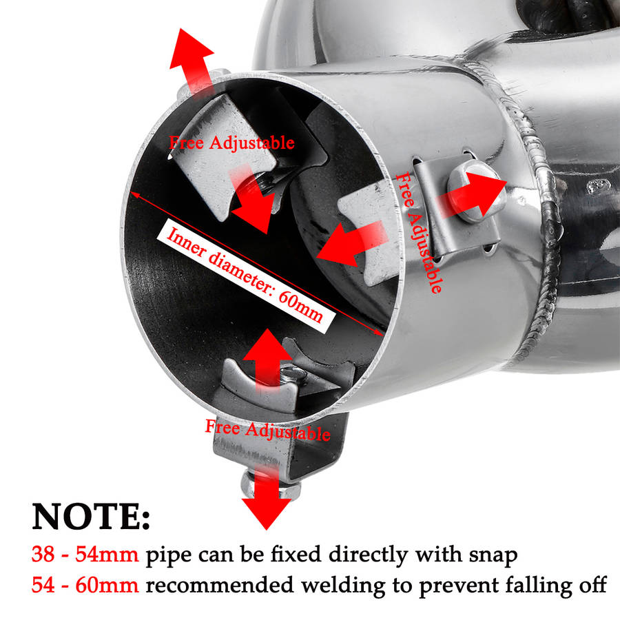 Fitments : Universal fits 2.36 60mm Inlet trucks car exhaust tail pipe muffler tips.