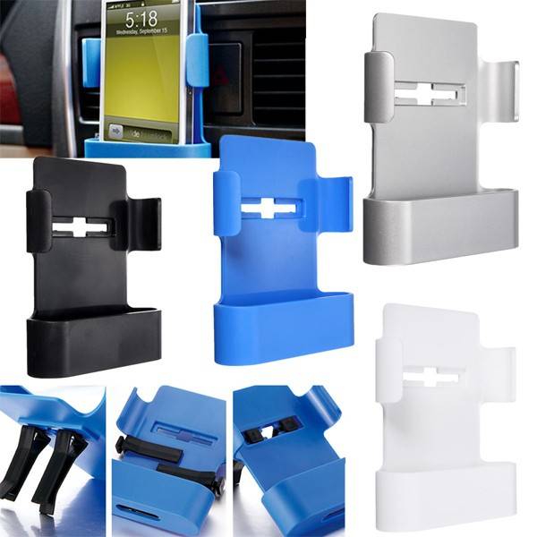 Universal Car Air Vent Mount Bracket Stand Phone Holder for iPhone 6s plus S6 Description: This product car mount holder is perfect for holding your digital product onto car air vent, super compact size, without blockingyour sight, Easy to pull out, safe and convenient to drive. 1. 100% Brand new and high quality. 2. To fit for most of cell phones, iPhone6/6 plus/5S/4S/ Samsung S6/ HTC /iPod/ MP3/ MP4 players.(Width≤9cm) 3. Eventhough you hit the brakes, it will not fall. 4. Easy one-touch mounting system locks and releases the device with just a push of a finger. 5. Colors: white, black, silver, blue 6. Size:90mm*25m*98mm Package Include: 1x car holder