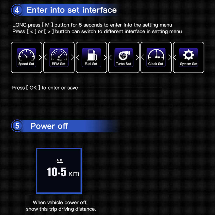 Package: 1 * Smart Guage 1 * OBD Connecting Cable 1 * Operating Instructions