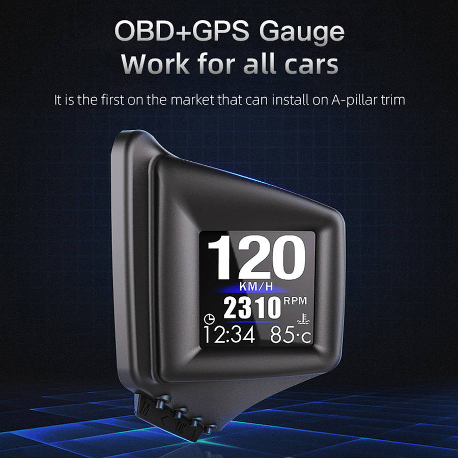 Smart Guage Universal Car Digital OBD + GPS A-pillar HUD Intelligent Dual System Smart Gauge Meter
