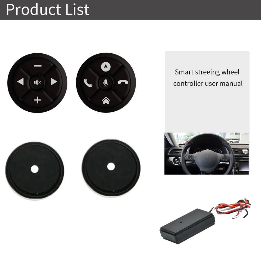 Instructions: 1.The control box needs to be connected to the power supply, the control line of navigation or DVD. 2.The controller can be installed in the steering wheel and can be used as a remote control.