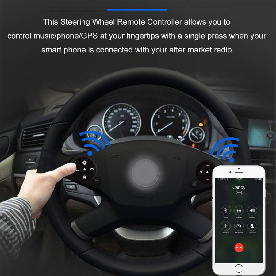 Feature: 1.Multifunctional controller: GPS, hang up/answer, volume setting, music controlling and so on 2.Simply install it in your steering wheel, easy to control 3.Helps you release your hands, convenient and safe 4.Small size, portable
