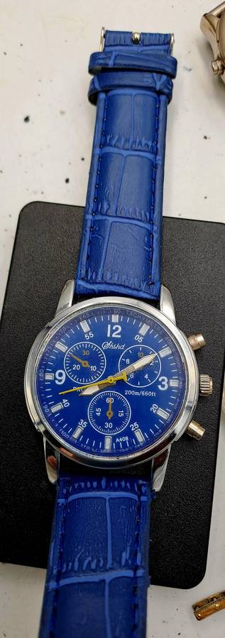 POSTAGE WILL BE COMBINED: Collection in Mondeor Johannesburg:Tip: To save on shipping -Buy more than one of My 2000+ ItemsUniversal Fashion Quartz watch -WorkingNew Battery inserted September 2025Face= 40mm x 50mmLug Width 20mmLeather strap Total Length 24cm-Please see ALL IMAGES - Multiple Images Uploaded - The pictures of the items form part of the descriptionDue to the age of many of our Items there might be some Flaws and Imperfections.Colours depicted in the photos of items may differ from the actual colour of the items due to many factors including the light and the time of day that the photos are taken.I always try to get the description 100% correct with some research but can get it wrong sometimes ..i am not an expert. |