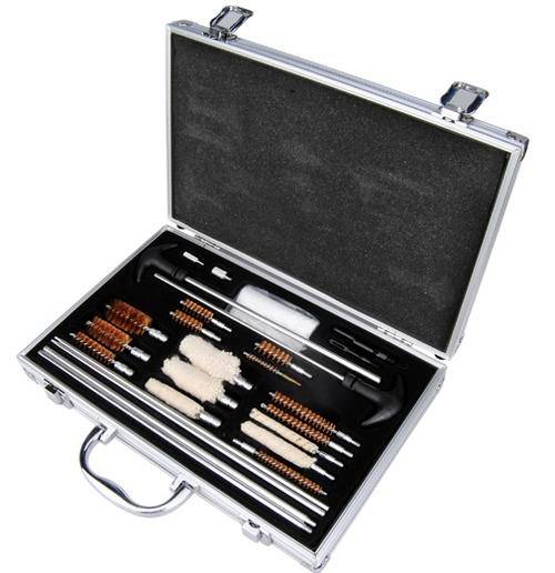 This is a great cleaning kit which will fit the vast majority of all Shotguns, Rifles and Pistols. Comes in a beautiful Aluminum storage/carry case.
