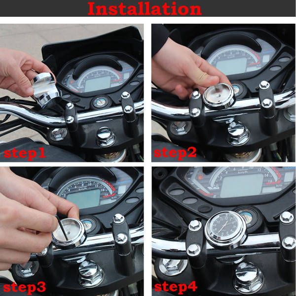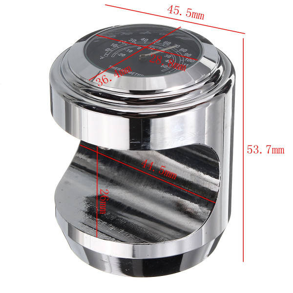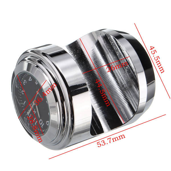Package weight: 0.17 kg Description: Universal fit Noctilucent, comes with screw spanner and non-slip rubber Waterproof, shock resistant, high quality, durable, high effiency Mounts on straight section of handlebars with a stainless steel screw Specification: Type: 1(Thermometer), 2(Clock) Case Color: Chrome Clock Dial Color: White Material: High Quality Billet Aluminum Size: 45.5 X 53.8mm/17.9 X 21.2in Fitment: Fit most of the motorcycle / cruiser / chopper / custom with 7/8" to 1" handlebar Note: 1.No instructions. Professional installation is highly recommended 2.Please check the size measurement carefully before making payment 3.Please allow 0.5-1 inch difference due to manual measurement.(1 inch=2.54cm) Package Included: 1 X Motorcycle Handlebar Clock 1 X Screw Spanner 1 X Non-slip Rubber or 1 X Motorcycle Handlebar Thermometer 1 X Screw Spanner 1 X Non-slip Rubber