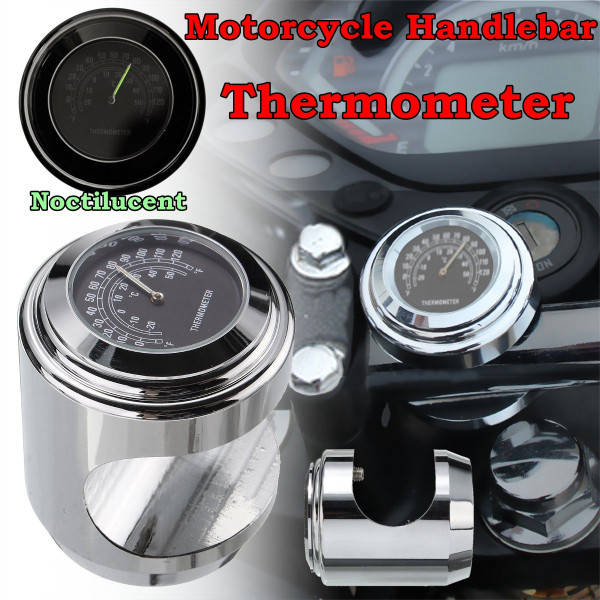 Universal Motorcycle Bike Handlebar Clock / Thermometer Black Dial 7/8'' 1''