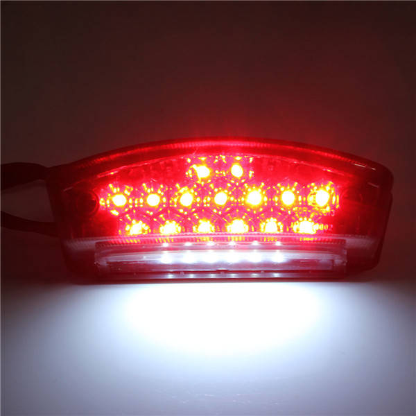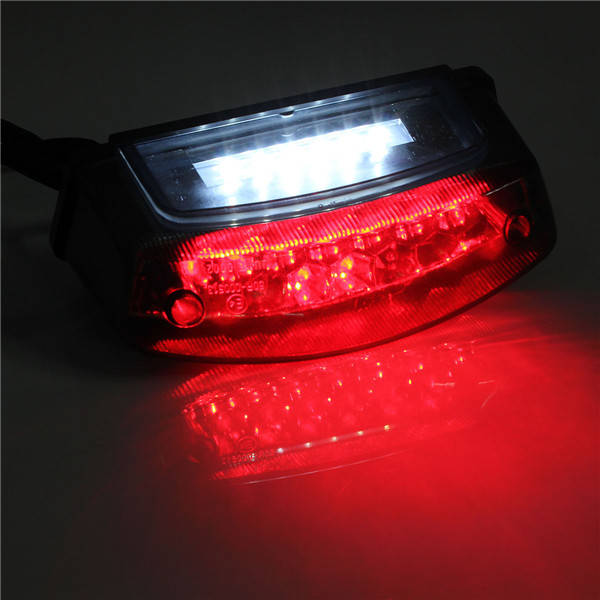 Universal Motorcycle LED Rear Tail Brake Stop Light Number Plate Lamp Description: Brand New Easy to install Universal for tail light, brake light,running light and license plate light etc. Specification: Casing material: ABS Plastic Lens color: Black LED's color: red & white Quantity: 1 pc Voltage: 12V E-mark(E4) approved Connection: 3 wires Distance of mounting point: approx. 11cm Dimension: (approx.)16 x 6 x 8.5cm / 6.3" x 2.3" x 3.34" (LxWxH) Wire length: (approx.)46.5cm To Fit Make: Harley-Davidson Honda Suzuki Kawasaki Yamaha BMW K To Fit Model: All Models From 50CC 125CC 250CC 500CC 750CC 900CC Compatibility: universal lamp Package Included: 1 x Motorcycle Tail Brake Light