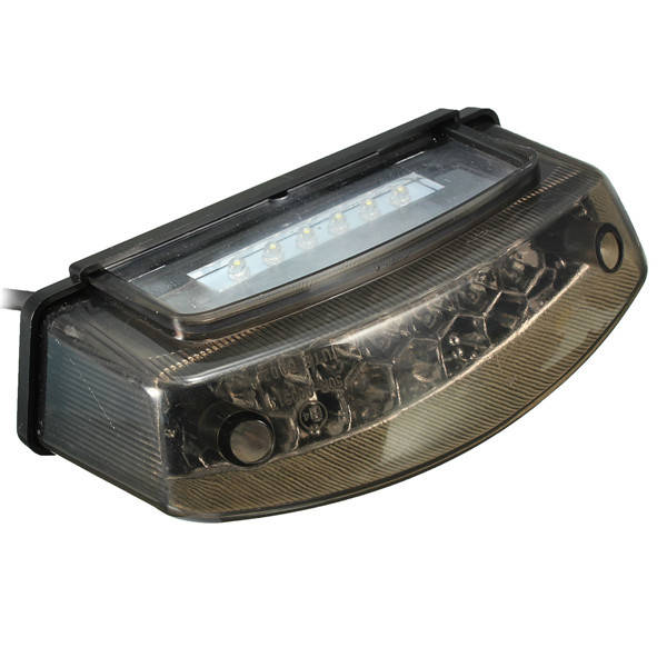 Universal Motorcycle Blackened LED Rear Tail Brake Stop Light Number Plate Lamp