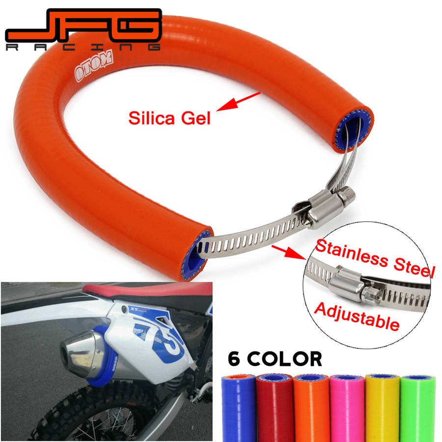 Description: Great for reducing under hood heat to protect your vital engine components. Items are made from Silicone and Stainless Steel,which are durable and heatproof. Both of them can protect your motorcycle exhaust pipe from the damage of high temperature. Specification: Product Name: Universal Motorcycle Accessories Exhaust Protector Color: Green/Red/Blue/Orange/Pink/Yellow(Optional) Material: High Temperature Resistant Silicone/Stainless Steel Weight: 150g Silicone: 33cm / 12.99 Stainless Steel: 52cm / 20.47 Fitment: Fit for universal for Dirt Bike More than 250cc. For KTM EXC SX SXF SX-F EXCF XCW MX 250 350 450 500 525