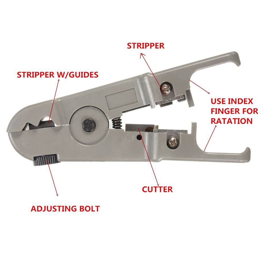 Description: Universal Rotary Coax Coaxial UTP/STP Cable Wire Cutter Stripping Tool Stripper Using the stripper, you should only hold the handle and manipulate it once to successfully peel down the wire sheath.