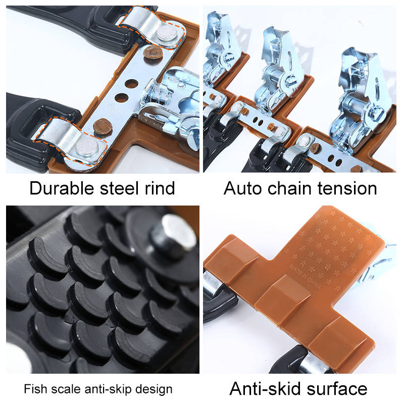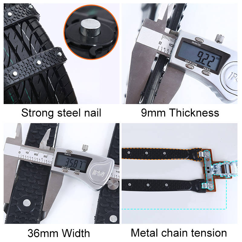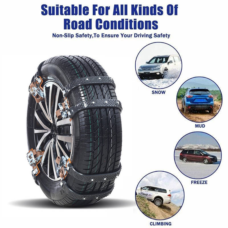 Specifications: Quantity: 1PC Material: Thickening steel nails, TPU Suitable Car, SUV/MPV/Automobile Color: Black Size (Approx.): S: Applicable Tire Width: 165-215mm L: Applicable Tire Width: 225-275mm Applicable Scope: Ice road, snow road and mud road Features: - Automatic tightener design; Freezing point centralized design. - Made of steel material, high strength, good toughness, wear resistant and pressure resistance, super longevity. - The strong safe engineering belt is resistant to the tension, low temperature and wear. - The chain closely fits the tires without gaps, which is very safe for driving. - Perfect to deal with various road conditions such as snowfield, muddy road, or icing road, insures a comfortable drive with less vibration and noise. - 2 sizes for your option, universal fit for all car models with tire width between 165-215mm / 225-275mm. - Easy installation in a few minutes. Packing List: 1* Anti-skid Chain Note: 1. According to the different situation, installation of numbers is different, such as emergency climbing, you can install two chains, depending on individual circumstances. 2. Do not install the chains at inflatable holes. 3. Double drive, install it in the drive wheel; Four-drive can be free. 4. Marked model on the outside of the tire, if the modified (changed the tire), be sure to check the model. 5. Light shooting and different displays may cause the color of the item in the picture a little different from the real thing. The measurement allowed error is +/- 1-3cm. Thanks for your understanding!