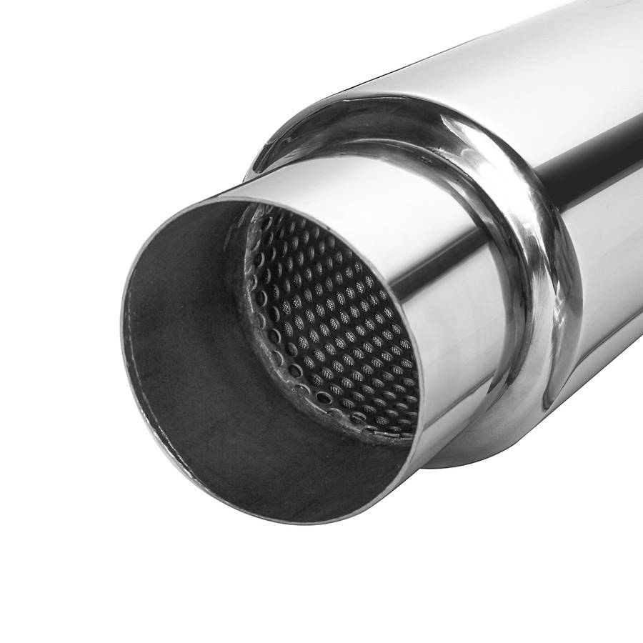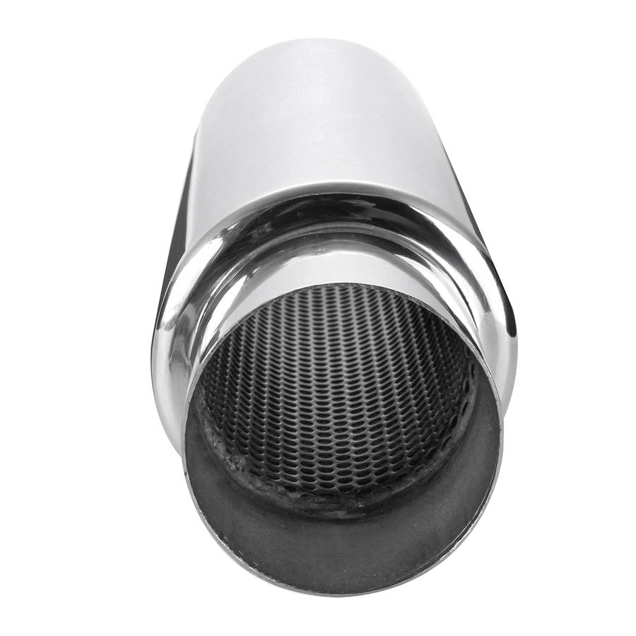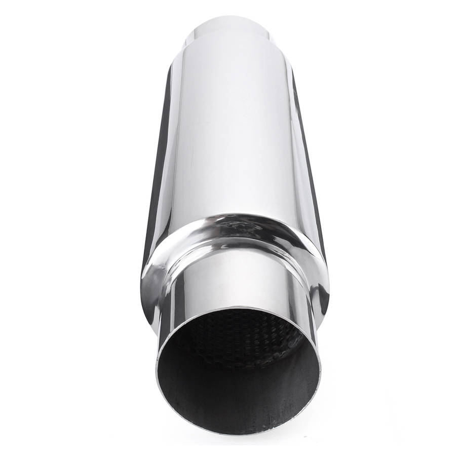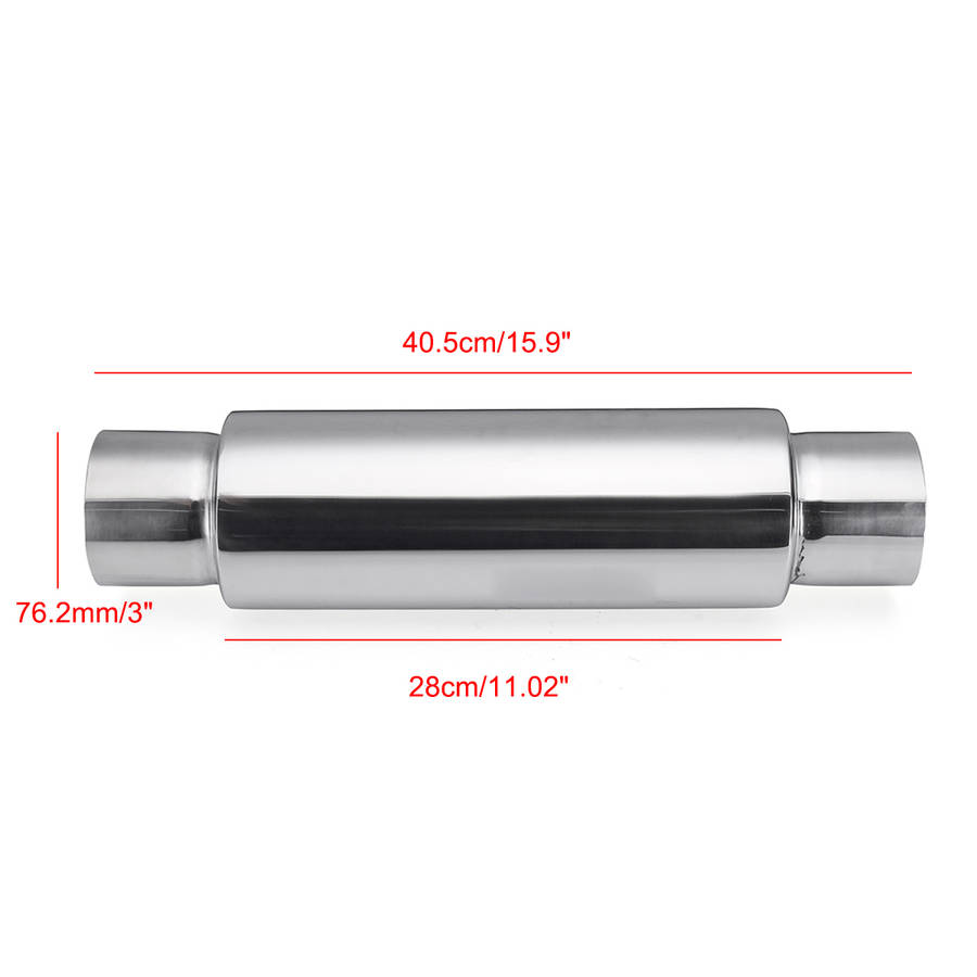 Feature: 1. Exhaust tip has corrosion resistance to alkali solution and most organic and inorganic acids. 2. Repeated polishing processing, highlighting the noble quality. 3. Perfectly decorate the exhaust pipe of your car. Specification: Material: Stainless steel Color: Chrome Overall length: 40.5cm/15.9 Inlet: 76.2mm/3 Outlet: 76.2mm/3 Surface finished: Polished