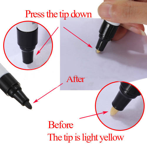 Package weight: 0.01 kg Description: Length: about 145mm Diameter:15mm Weight:20g Fast dry after writing. Oil-based ink, writing smooth, waterproof, does not fade. Can be written on any surface: metal, glass, wood, plastic, painted surfaces, etc. Metal body of the pen, high quality nib,each pen can complete about 200 meters linear write painting. Usage: Shake several times Press the tip down 3 or 4 times Cap the pen tightly after use Notice: All Pen's nib are yellow before use.You need press the the tip down 3 or 4 times,it will become corresponding color Package Included: 1 x Universal Marker Pen