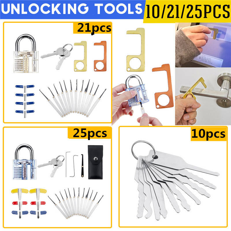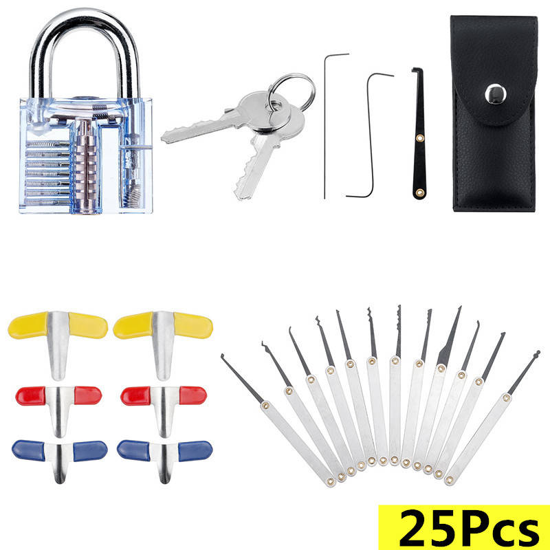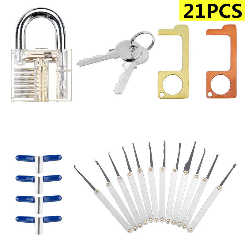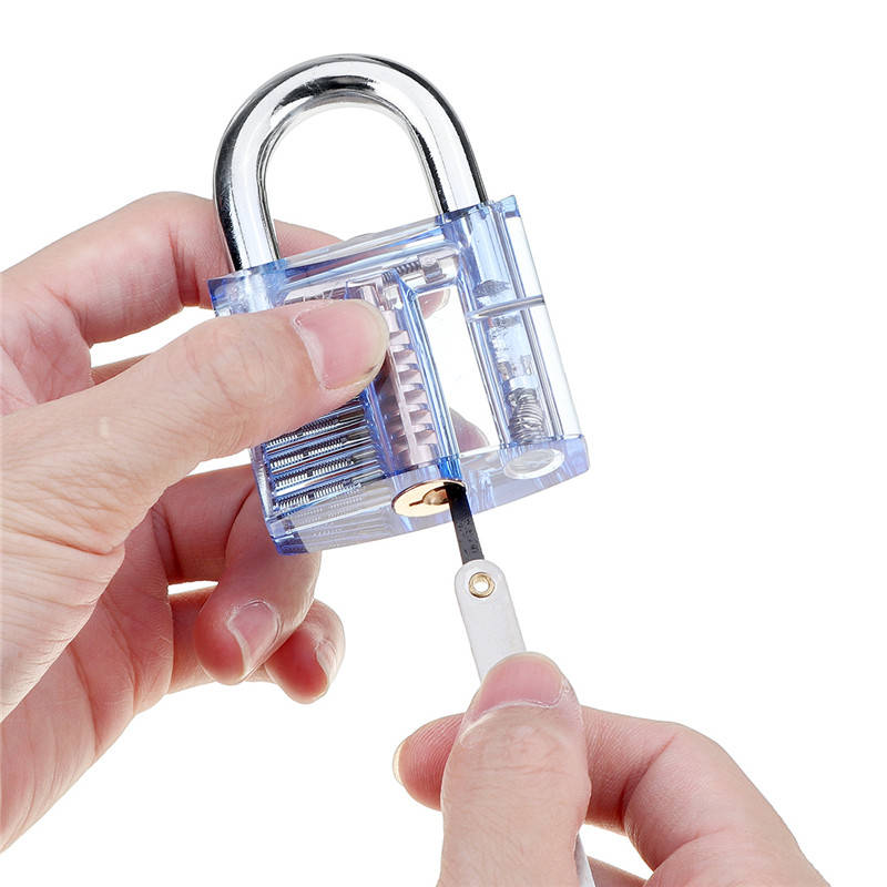 Specification: Color: As picture shows Material: Spring steel, stainless steel Transparent Lock Padlock Size: 5 x 3 x 1.4cm Package included: 25PCS(With Padlock) 1 x Transparent Lock Padlock 2 x keys 12 x Hooks Lock Pick 6 x Padlock Shims 3 x Picks 1 x Storage Bag 21Pcs(With Padlock) 1 x Transparent Lock Padlock 2 x keys 12 x Hooks Lock Pick 4 x Padlock Shims 2 x Non contact Door Opener 10PCS 10 x keys Details Pictures: