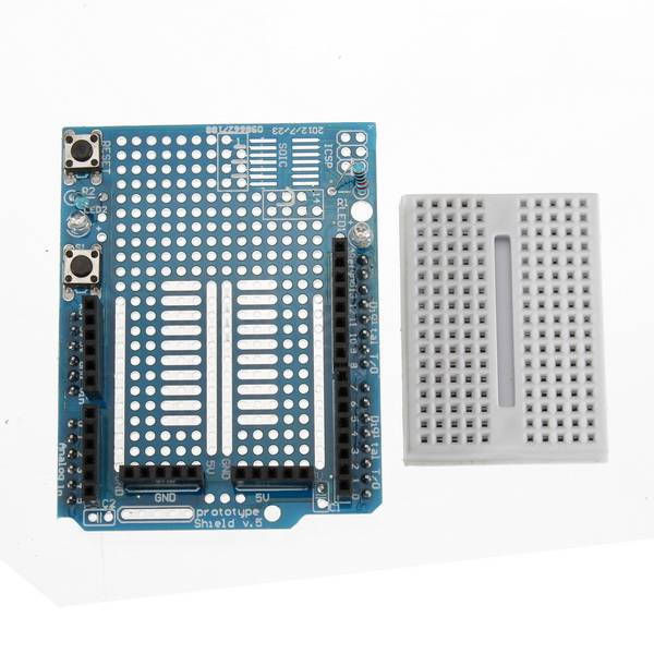 1 x Generic -Compatible UNO R3 + USB Cable (Tested and working with IDE) 1 x UNO R3 Protoshield + Solder-less Breadboard (Goes On Top of Protoshield) 1 x 1602 Blue LCD Keypad Shield 1 x 16-Channel Servo Controller (Servos Sold Separately) 1 x Motor Driver Expansion Shield L293D (Drives Up to two servos and stepper motors) 1 x Hanrun W5100 Ethernet Shield & SD Card Adapter 1 x Sensor Shield