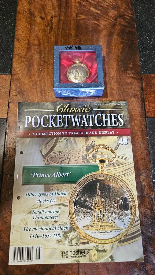 The pocket watch is sealed and unused. The book does show some wear around the edges.