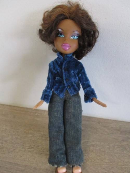 25CM TALL AND IN VERY GOOD CONDITION WITH SOFT SILKY HAIR CUT IN A CURLY BOB - I THINK HAIR IS SHORT ORIGINALLY AND NOT THE WORK OF LITTLE HANDS AS HAIRSTYLE IS VERY NEAT AND WELL STYLED. REFER IMAGES