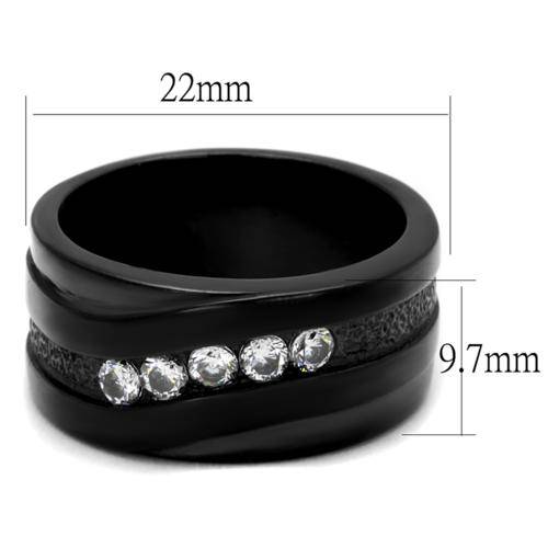 UNUSUAL BLACK STAINLESS STEEL SIMULATED DIAMOND LADIES RING