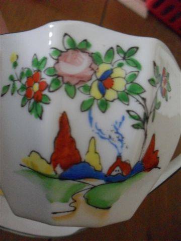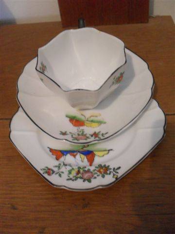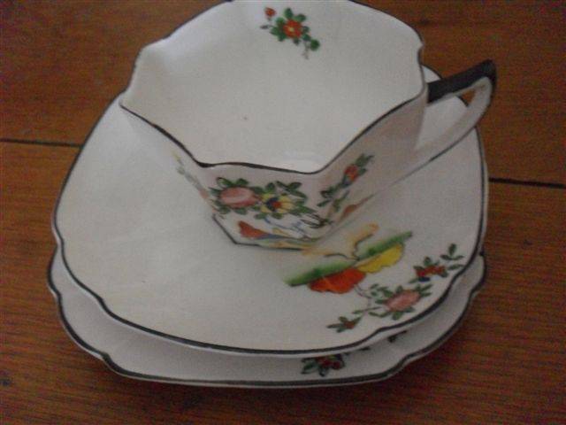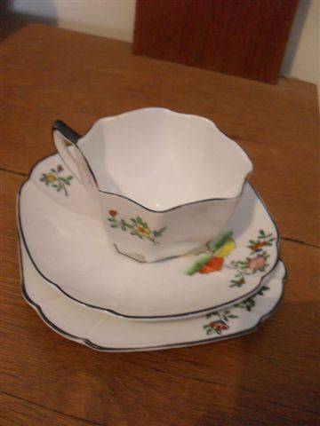 UNUSUAL....OCTAGON SHAPED HAND PAINTED TRIO.....ROYAL WINDSOR.....