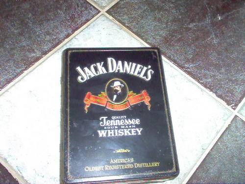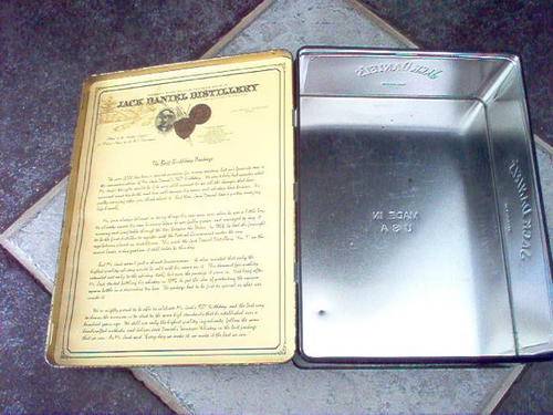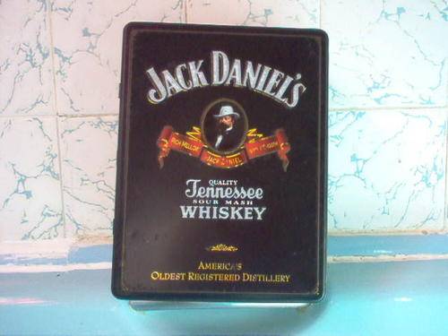 A WONDERFUL OLD JACK DANIELS TIN WITH HINGED LID AND IN CLEAN CONDITION MEASURING 27CM HIGH 20CM WIDE AND 10CM DEEP INSIDE VERY CLEAN AND NO EVIDENCE OF RUST