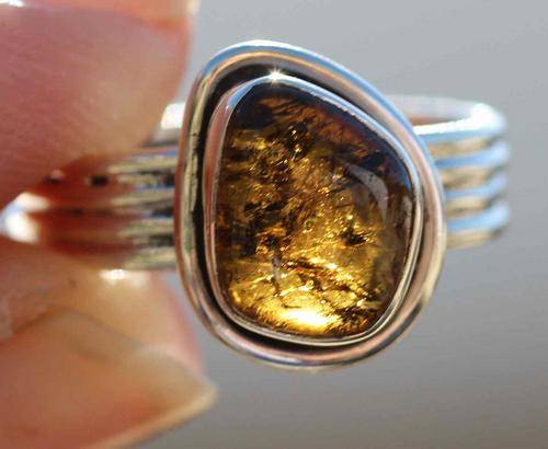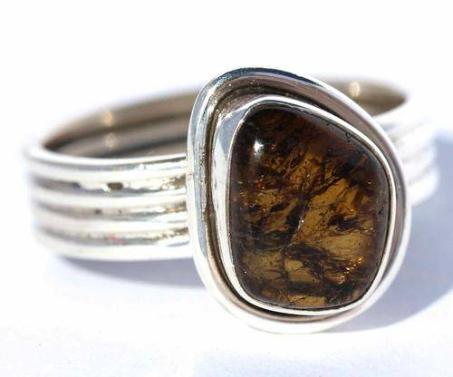 The ring is a rather nice design. It has the appearance of being four separate silver rings but in fact it is all one piece. The stone is set in solid silver with a surrounding double lip.