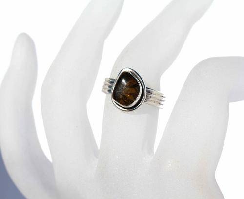 UNUSUAL PIETERSITE GEMSTONE RING SET IN STERLING SILVER