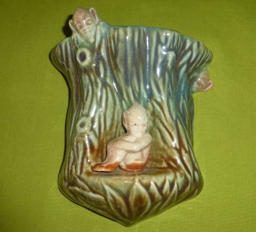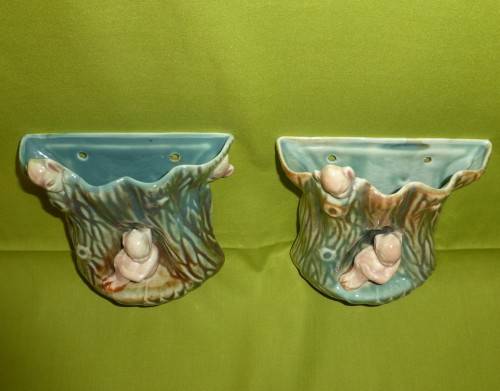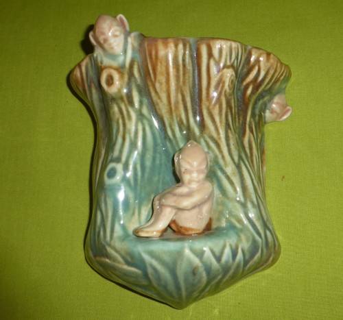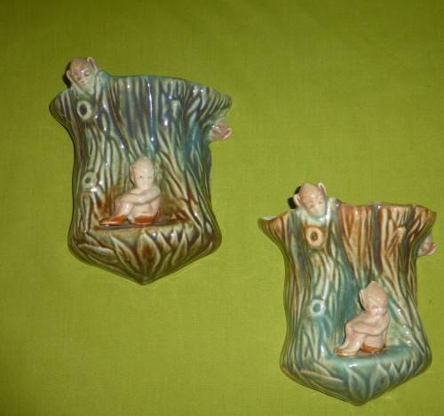 One bid for both! Very unusual - looks like little pixies living in a tree trunk. Very cute how they are peeping around... They are both in excellent condition, with no chips or cracks. Slightly different shades - please see photos below.