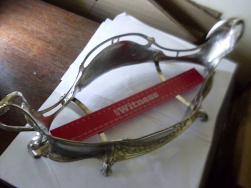 UNUSUAL STYLED LARGE VINTAGE SP CASAROLE DISH HOLDER ....SEE DESCRIPTION SIZE IS 49 CM X 19 CM X 15 CM ....ONE SIDE OF THE ITEM NEEDS REPAIRS...SEE PICS PLEASE POSTAGE IS R125 WITH POSTNET TO POSTNET