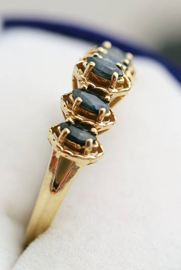GORGEOUS 5-STONE TERRACED BRIGHT BLUE SAPPHIRE RING, 10CT YELLOW GOLD. CLASSIC ELEGANCE!
