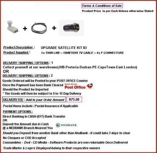 Upgrade satellite KIT 03 ////// \\\\\ Twin LNB + Cable + connectors