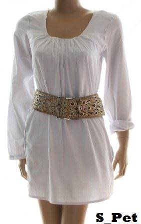 This tunic features side pockets, long sleeves and gathered neckline. BELT NOT INCL.