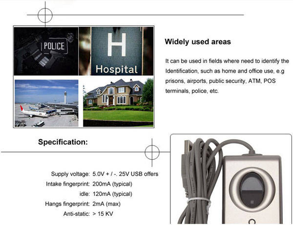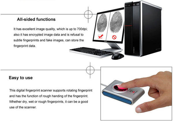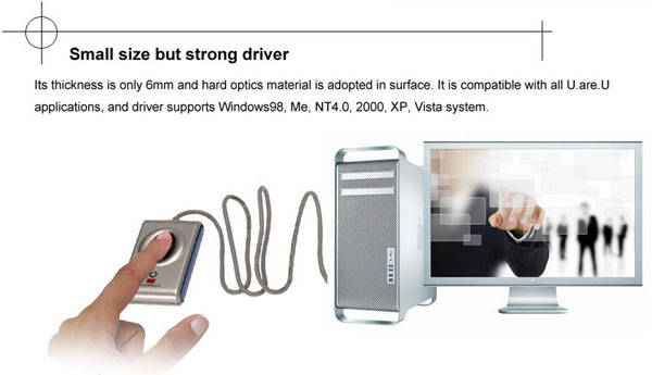 The U.are.U 4000B miniature fingerprint scanner that automatically reads the fingerprint image, and through USB interface to transfer digital fingerprint images to the computer, support in control technology Biokey SDK development tools. For a laptop, desktop computer or other personal computing device requires authentication, it is the ideal accessory.