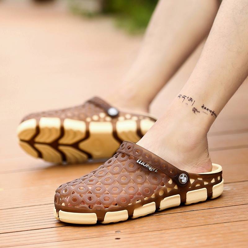 US Size LUOKEN Male Casual Fashion Summer Breathable Hole Semi Slipper Sandals