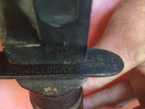 Note: During World War 2 the American government gave various contracts to knife-making companies to produce their fighting knifes. The two brands preferred by the marines were the Camillus and Ka-Bar knifes, hence they are also the most popular with collectors. A rare chance to get a good example of both makes and a must-have for war-knife collectors.