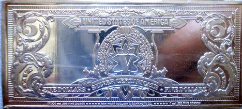 USA 5 DOLLAR BULLION COPPER - SILVER PLATING BAR 33GR.