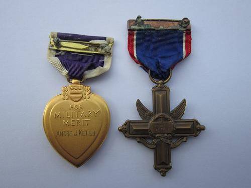 Distinguished service cross DSC and Purple heart. both awarded posthumously to Andre J Ketele. Who was killed in the Korean war. These are his original medals.