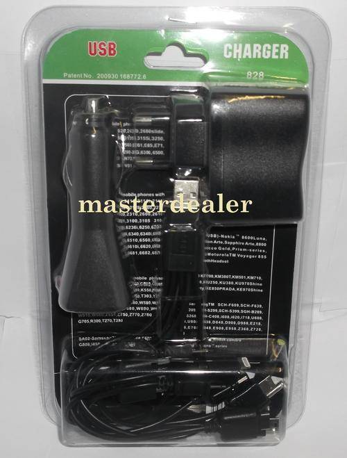USB Multi 10 in 1 universal charger + car adaptor + Wall adaptor