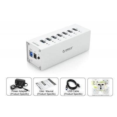 USB 3.0 Hub "Orico A3H7" - 7x High Speed Ports, Power Adapter - K241