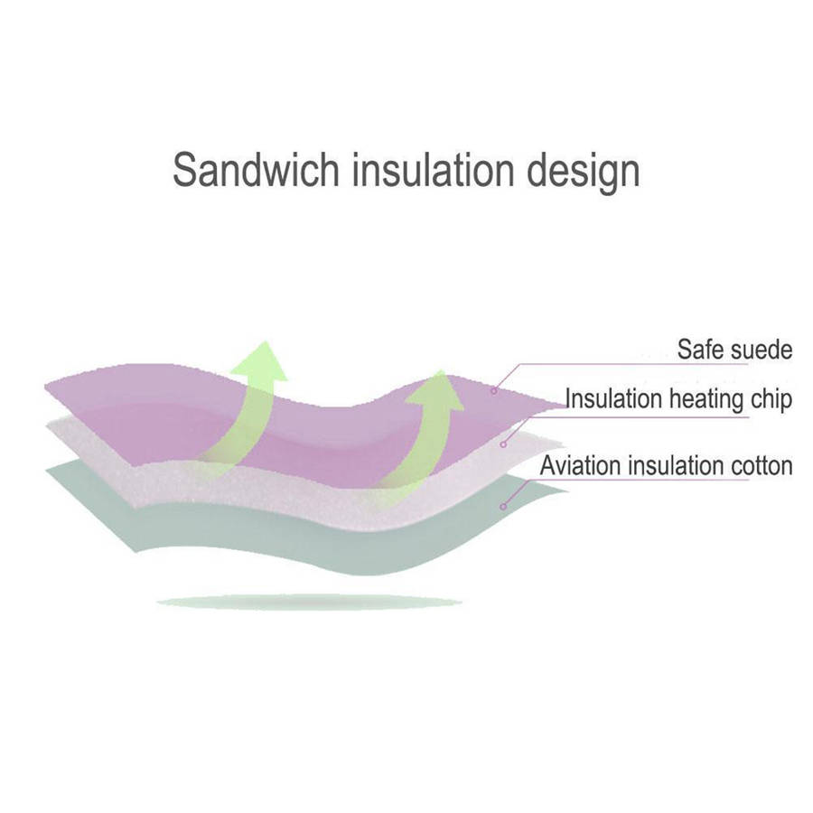 1. Sandwich insulation design: suede, insulation heating chip, aviation thermal insulation cotton, insulation heating core fireproof treatment, safe and secure.