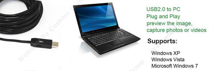 Specifications: Resolution:1080*720p View angle:60deg Focal Distance:3cm --infinite Interface: USB2.0 UVC Light:4 White LED Lights (Adjustable) Length:5 Meters Waterproof:IP-67