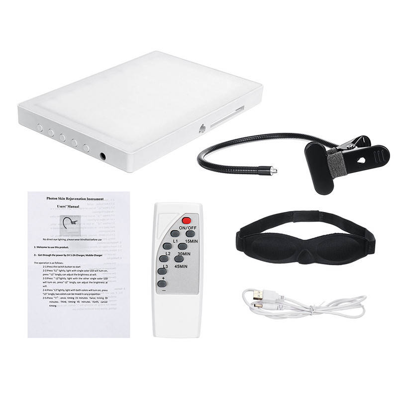 1 x Red Therapy Light 1 x USB Cable 1 x Blindfold 1 x Remote 1 x English User Manual