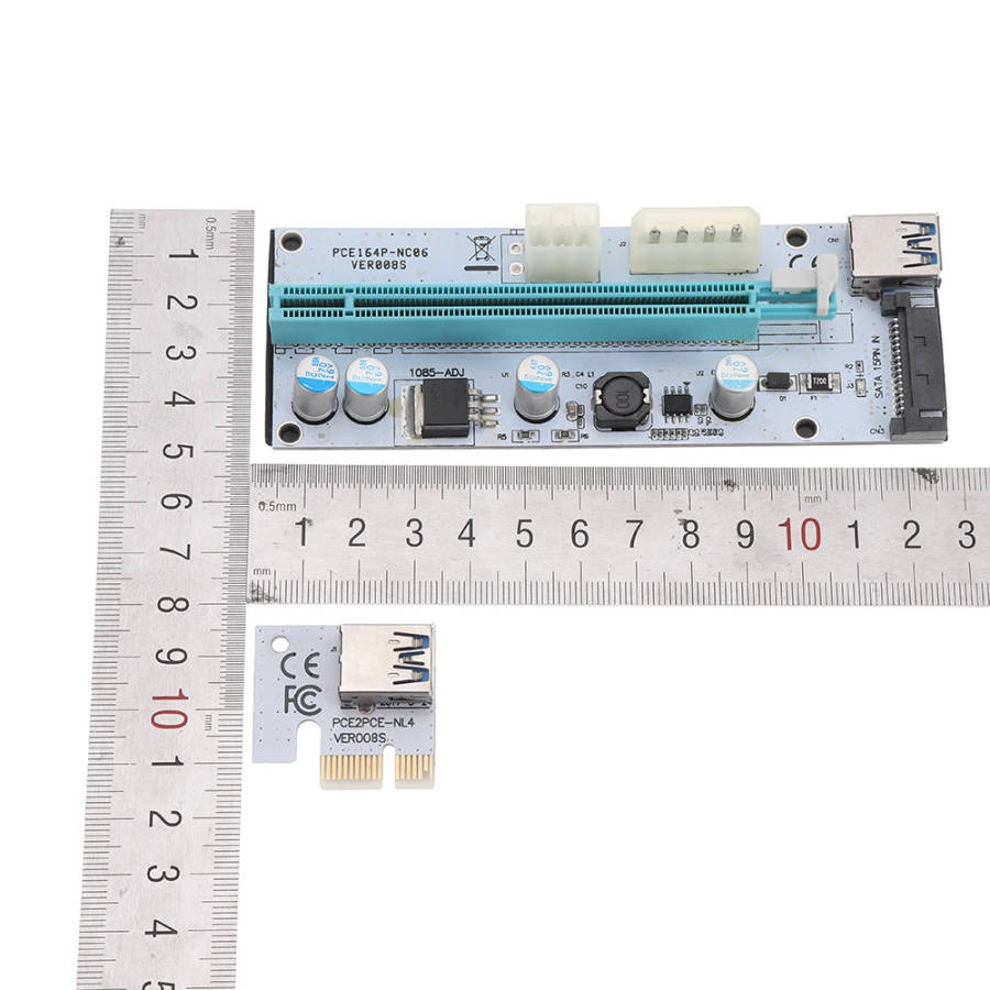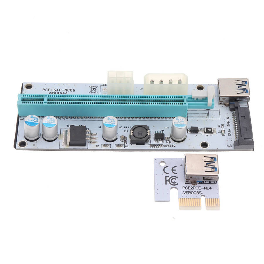 USB3.0 PCI-E 1x To 16 x SATA +4P+6P Extender Riser Card Adapter Power Cable Miner